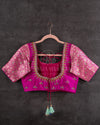Hot Pink two tone blouse with banarasi brocase sleeves